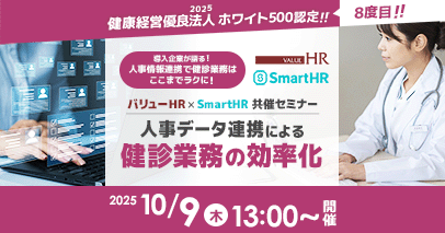 参加受付中2025年10月9日(木) 13:00~14:00バリューHR×SmartHR共催セミナー